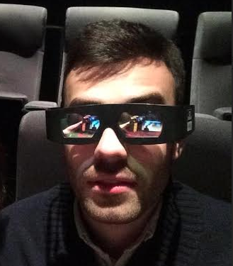 (v.) To attempt physical contact with the stereoscopic imagery of a 3D film, undeterred by prior evidence that no such contact is possible.