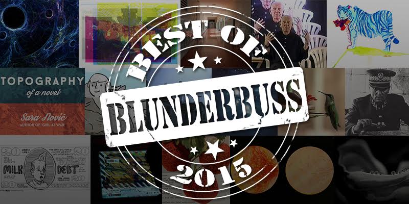 Even realizing that any list would be incomplete, that work we adore and are incredibly proud to have published would necessarily (and arbitrarily) be left out, and that we’d be contributing in our own small way to the listicle-ification of culture, we couldn’t resist putting together our own “Best of Blunderbuss 2015.” The work below is—in our own humble estimation—top-notch, but the list is not a definitive accounting of what’s worth reading and seeing. It’s more a chance for us to highlight outstanding pieces that you might have missed and a way to showcase the quality and breadth of work Blunderbuss has run over the course of the year. If you like what you see here, we’ve got a whole web magazine of other work that you’re likely to enjoy.