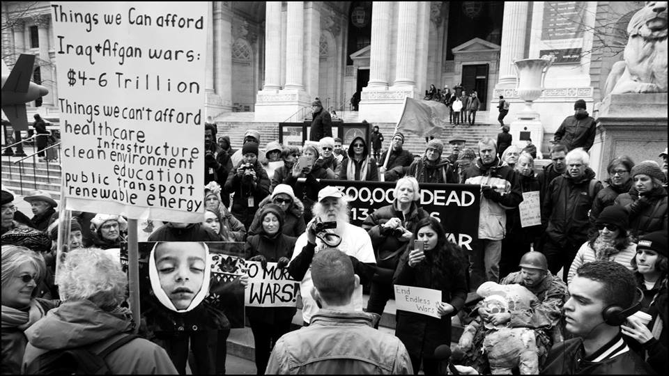 This meeting is to plan the Mar. 19 demonstration on the 14th anniversary of the U.S. invasion of Iraq, AND a protest during the Mar. 27-31 talks at the UN to ban all nuclear weapons, AND the Apr. 18 demonstration at the IRS protesting war taxes.