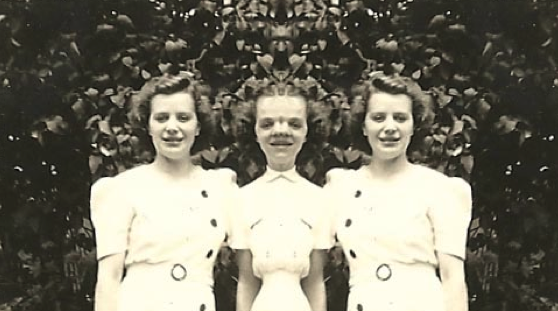 Two birch trees. Two sides of a sister. Two white columns. A trail of buttons. Two white snakes curling towards a heart. Dots scissor down the middle. A seam. Down the side. What she wears: A circle. A bangle. A poof at the shoulder. Two slits for pockets. A tennis shoe. A criss-crossed sandal. Or she keeps the time. See through our eyes: a summertime mirror with finger-made words washed out. Sixteen and seventeen. I love you. My hand disappears behind your back. Five foot five and five foot four. Two pairs of shiny stockings. A white wind. White-tailed doe. Two milky mushroom caps budding from the same stalk. Stem splitting and multiplying into buttons, daughters. One cell, two bodies. Tunneling into sand, into snow. From some ancient arctic woodland. Blooming under but a brief space of yellow light. Underneath the tree, one cellar. The inner room. Two statues of one god. A room wholly or partly. A bulb. One hollow, one flesh. Fragile and hardy. Below ground is not a suitable place to live. Inside a chamber of glass. Two cloudy lungs. One inhaling. One exhaling. Linnaea: the twinflower, a family of two heads turning toward you. Two trumpets of softness. One name, two parts. I once was the only one, then water filled my mouth and I found you. Always to double. Always twofold. I hold you, you hold. To double over. Twice over. Two times. Twice as much. Bend in half. Dual. To double check. To double cross. Double back. Double doors. Double bed. To descend the cellar stairs. To rise up but stay still. Imagine me deflating and shifting along the ceiling, against the trees. You told me to stand up with proper posture. To fly away. Never slouch but do surrender. Let’s walk away, into one another. Collapse like lovely ruins into one another.