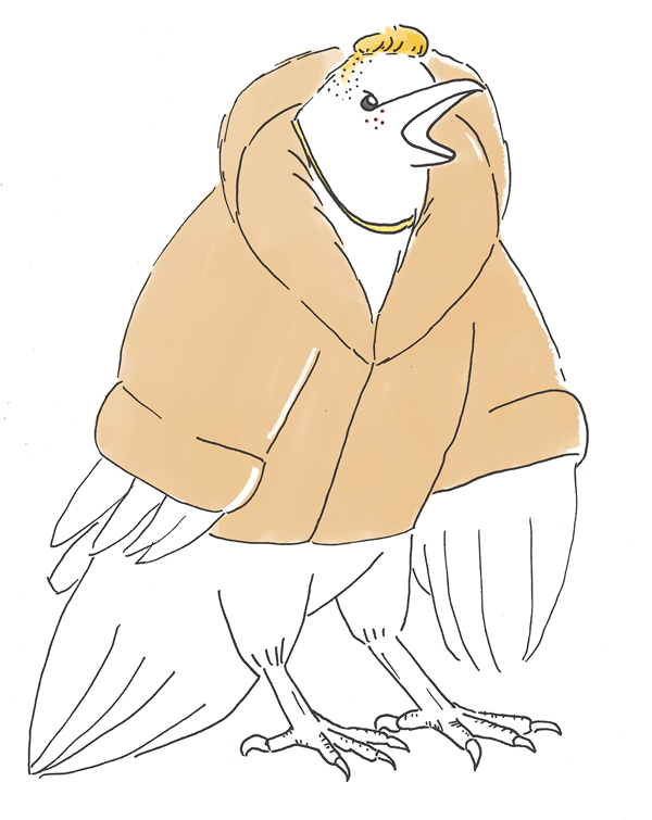 Not the least of all sense made he; a tank top and fur coat wore he;