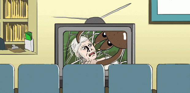 Last night was a bad one; I came out of the shower and walked in on him watching the end of the old version of The Fly, where the tiny fly-man is trapped in the web and Vincent Price has to knock him out before the giant spider comes to eat him. Help me. Help meeeee. Well, needless to say that was a whole new wellspring of questions, demands and bad dreams. The kid is already terrified of spiders. Jesus Christ. He dropped off at around 4:00 a.m., but not me.